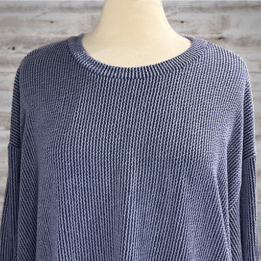 PLUS Oversized Navy Textured Long Sleeve Tee