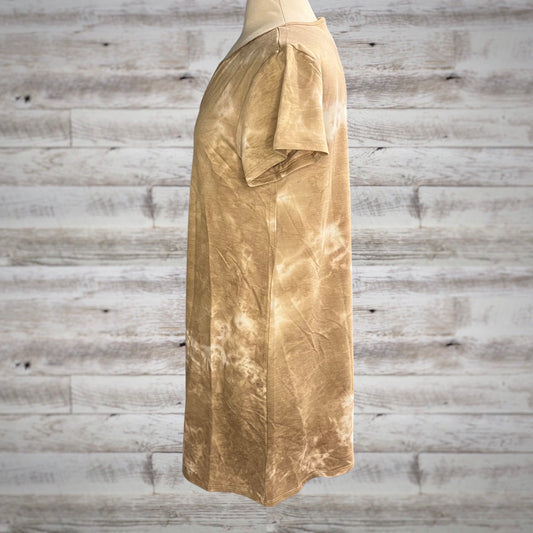 Tie-Dye Notch Neck Mini Shirt Dress in Tan