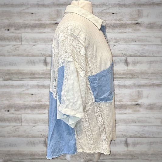 POL Ivory Lace and Chambray Boxy Button Up Top