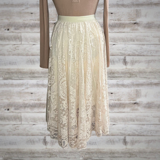 Bohemian Lace Doily Pull On Maxi Skirt in Ivory