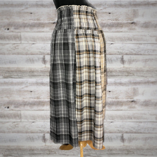 On Trend Split Plaid Flannel Maxi Skirt in Taupe
