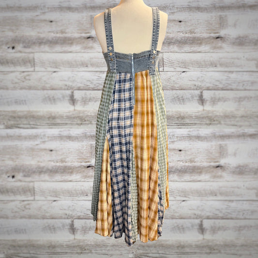 Midwest Girl Patchwork Plaid and Denim Overall Maxi Dress