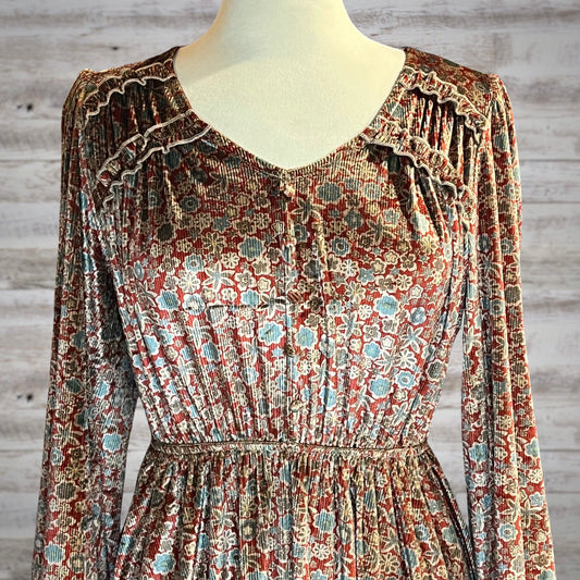 Shimmery Velvet Western Floral Long Sleeve Mini Dress in Red