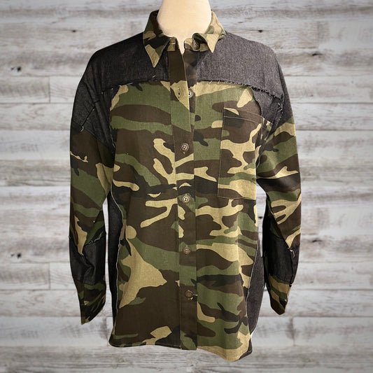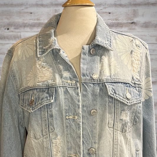 PLUS POL Country Roads Bandana Print Distressed Jean Jacket