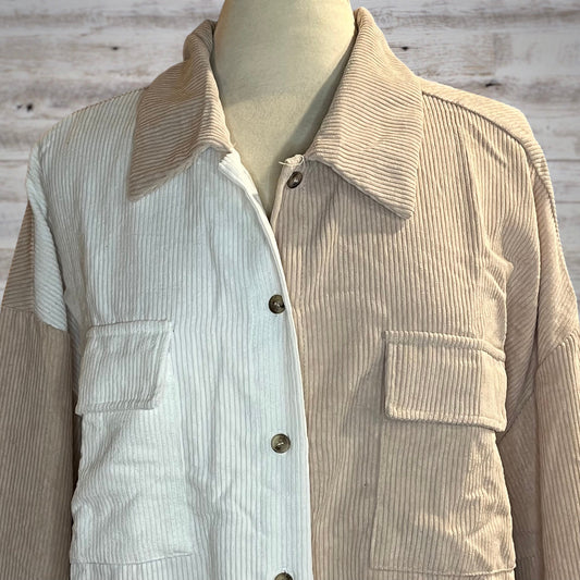 PLUS Lightweight Corduroy Colorblock Oversized Shacket in Pink