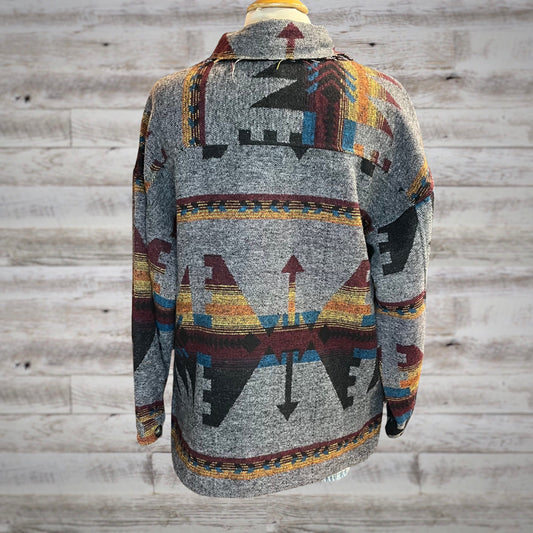Southwestern Print Fleece Blanket Shacket in Charcoal/Multi