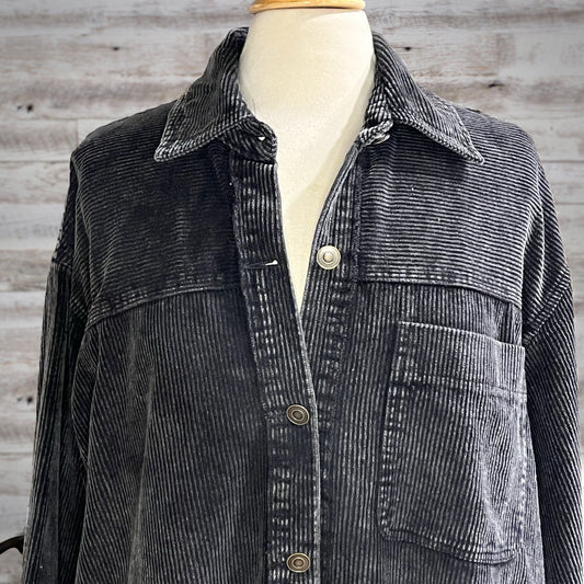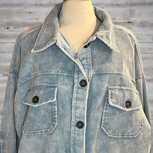 PLUS Comfy Oversized Corduroy Shacket in Teal Blue