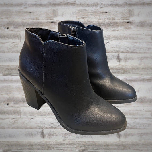 Leather Chunky Heel Zip Side Ankle Booties in Black