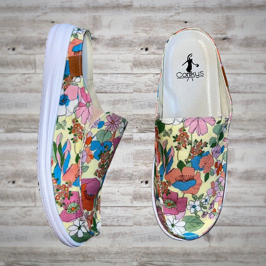 Corky’s Pontoon Spring Bloom Canvas Slip On Mule Boat Shoes