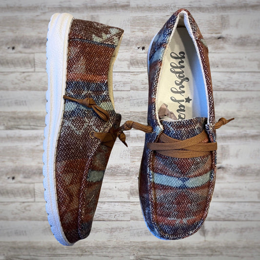 Gypsy Jazz Western Print Slip On Shoes in Rust