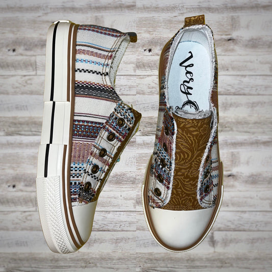 Very G Bohemian Tooled Leather Slip On Sneakers