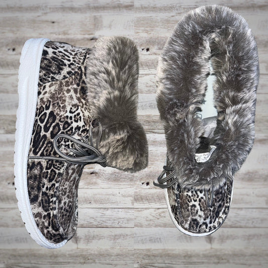 Gypsy Jazz Fur Lined Lace Up Booties in Dark Leopard