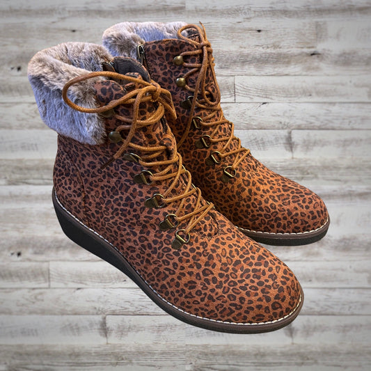 Corky's Foxy Leopard Print Mid Wedge Booties with Fur Trim