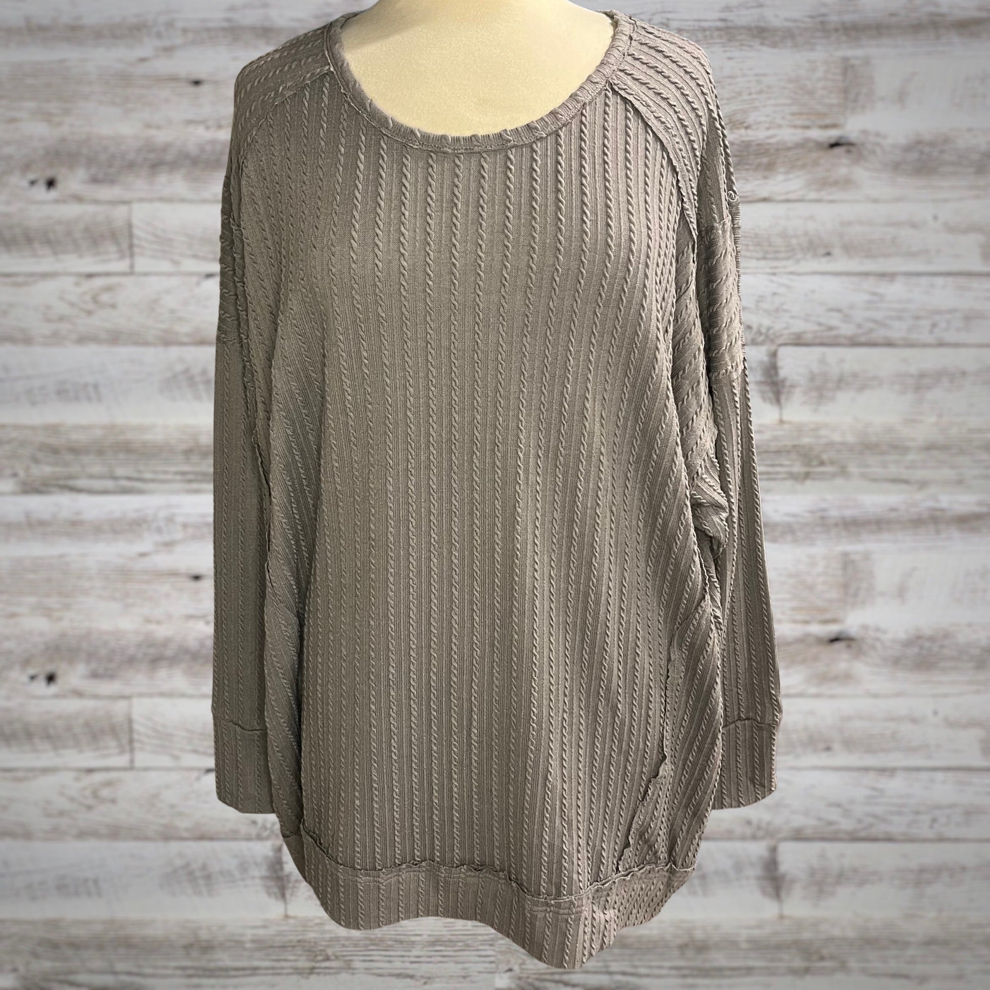 PLUS Lightweight Cable Knit Tunic Top in Gray